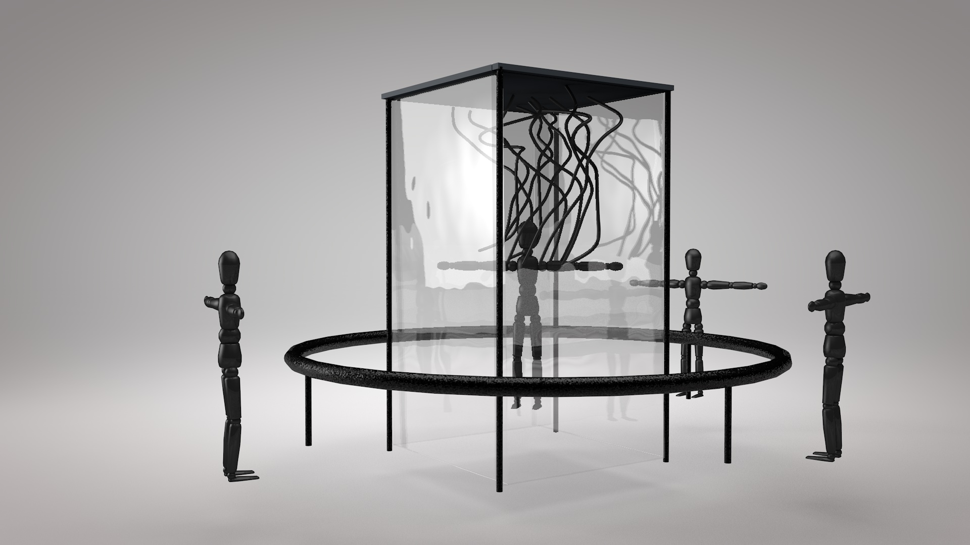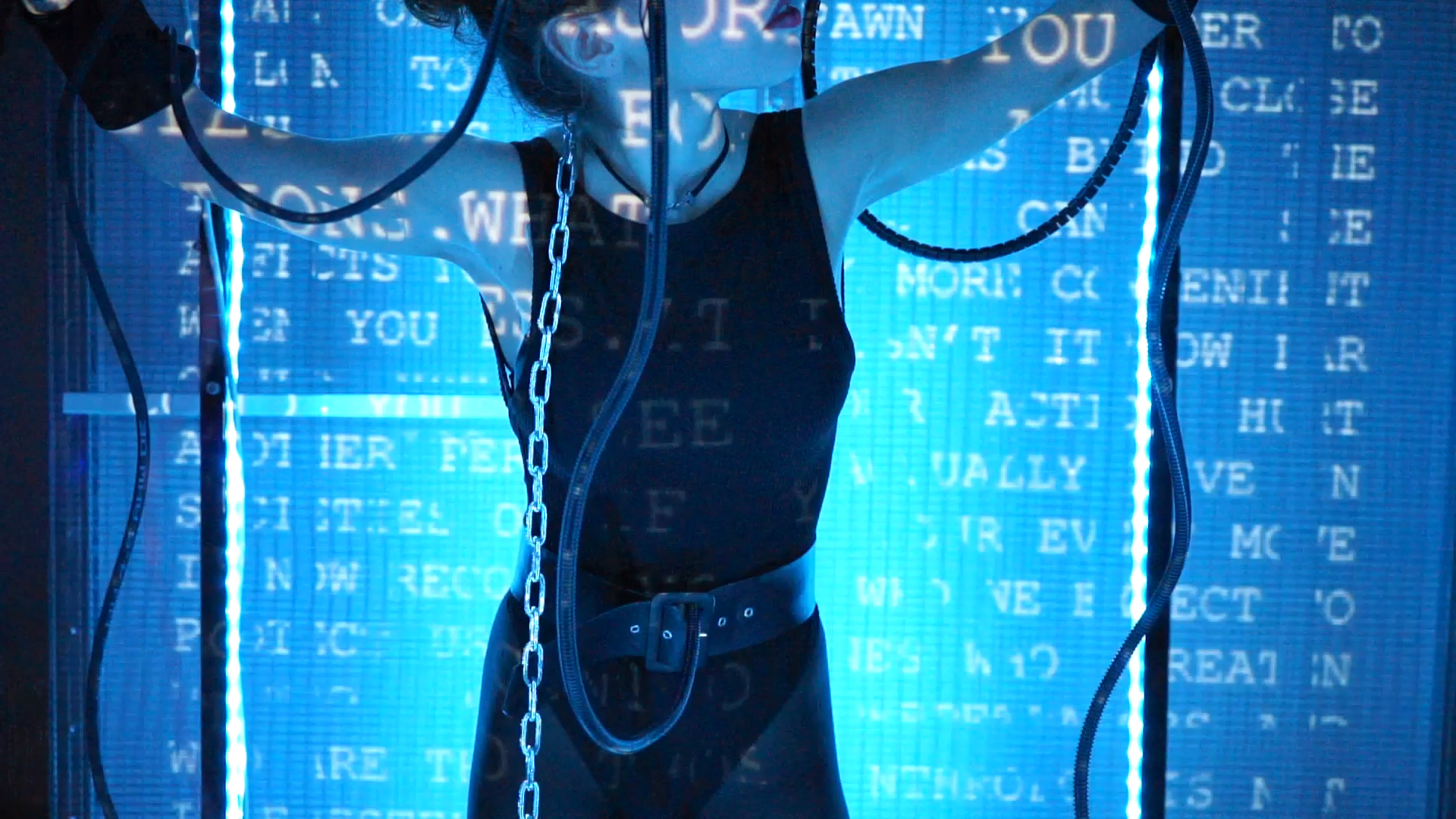 The installation allows users to test the limits of the performer, through an interface that receives their input and translates it into output causing the performer to react kinetically.